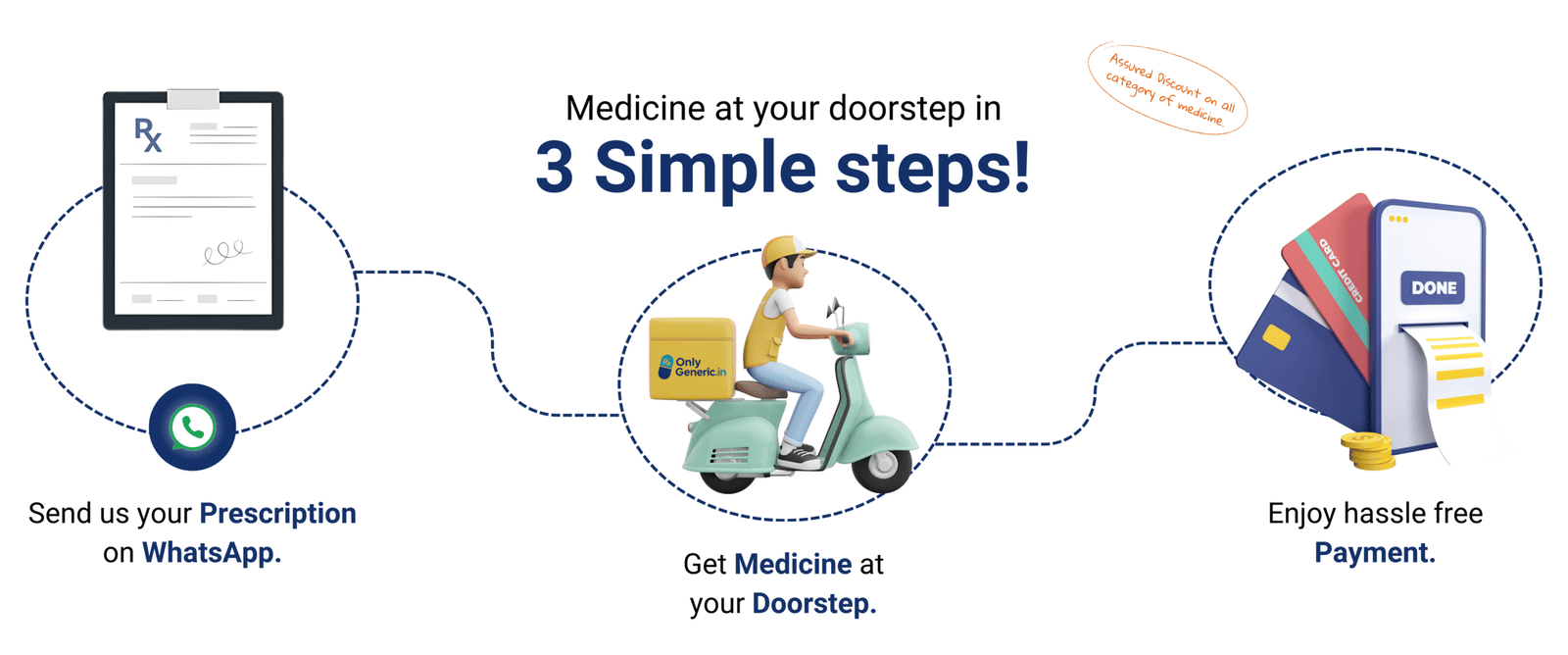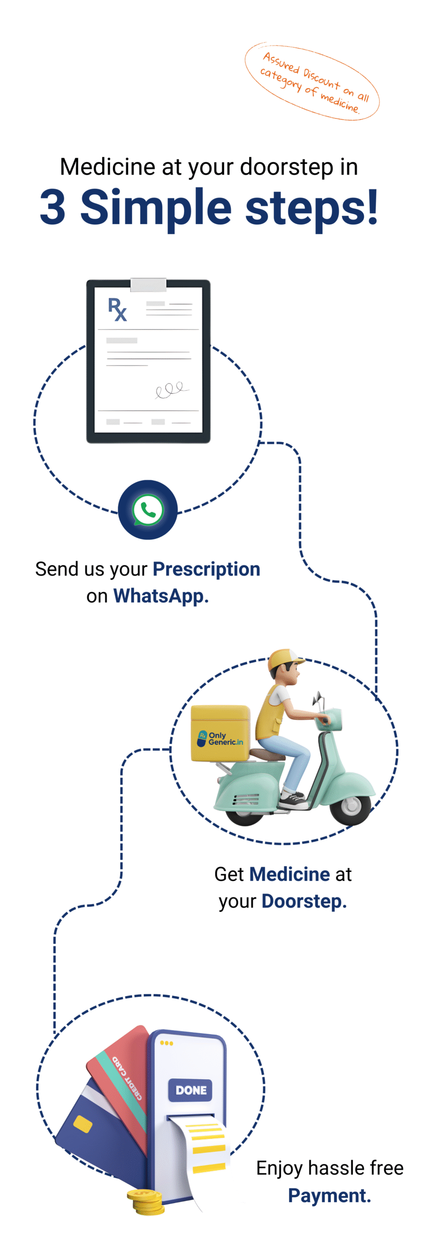 At OnlyGeneric.in, our goal is to make healthcare affordable and accessible for all. We provide high-quality generic medicines at up to 80% less than branded alternatives, helping you save on medical bills without compromising on quality. By simply sending your prescription via WhatsApp, you can have your medicines delivered right to your doorstep within 24 hours. We are committed to making healthcare easier, more affordable, and reliable — because your health deserves the best care at the best price.
